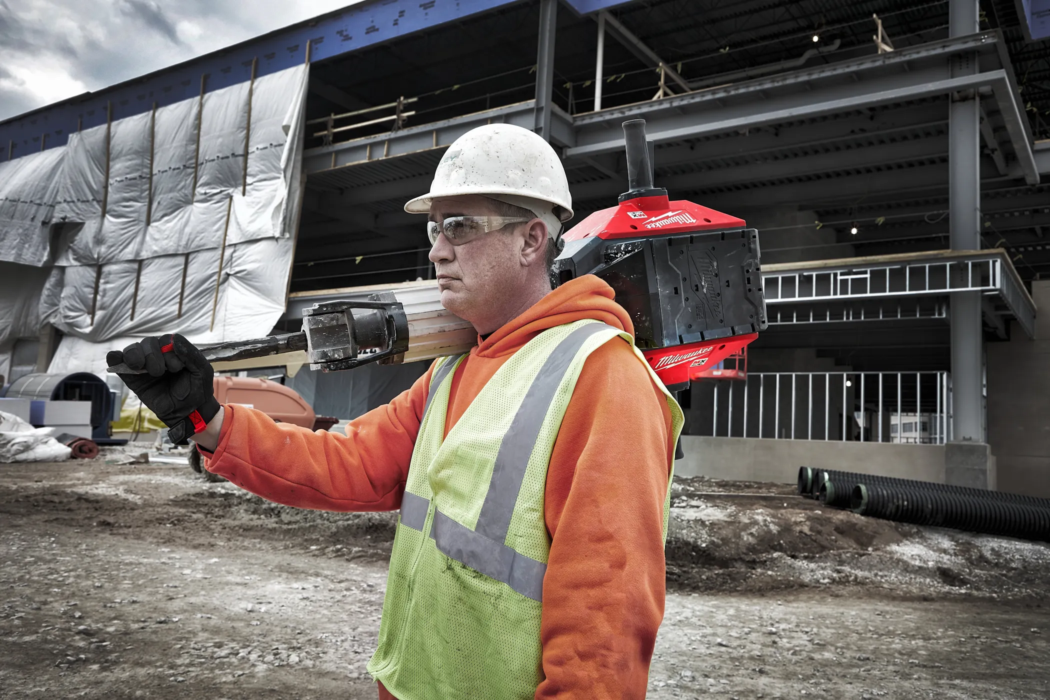 - Первый в истории аккумуляторный отбойный молоток 28 мм Hex. Обеспечивает мощность бензиновых, сетевых и пневматических аналогов