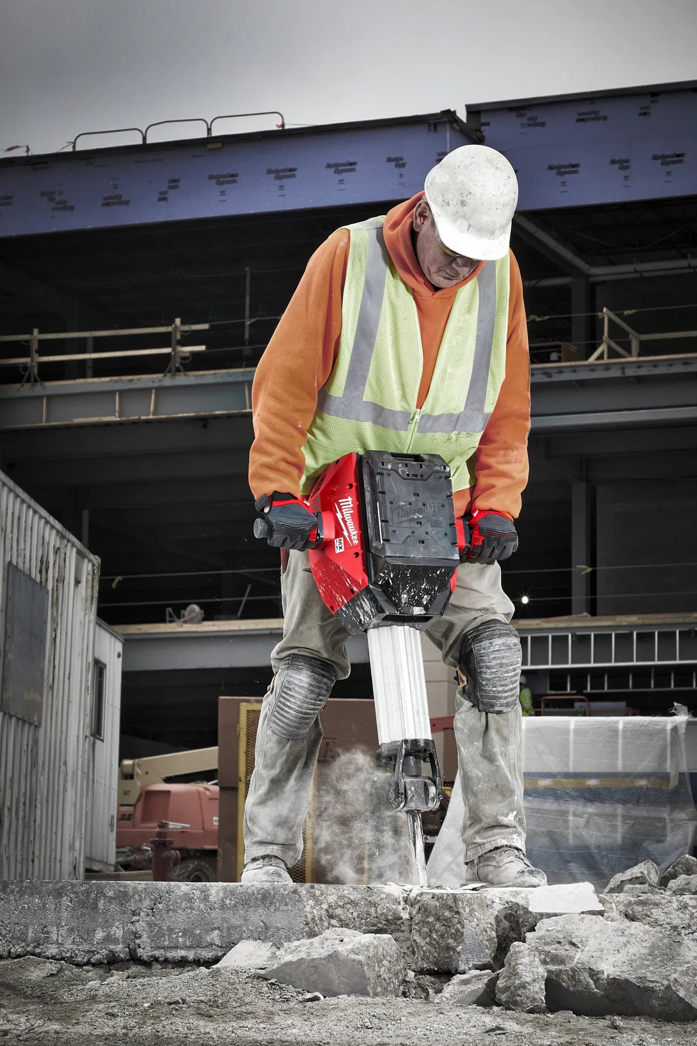 - Отдельно доступна тележка MXF DHT с местом для хранения 4 долот, зарядного устройства и аккумулятора, а также жгутом для крепления отбойного молотка и удобной транспортировки