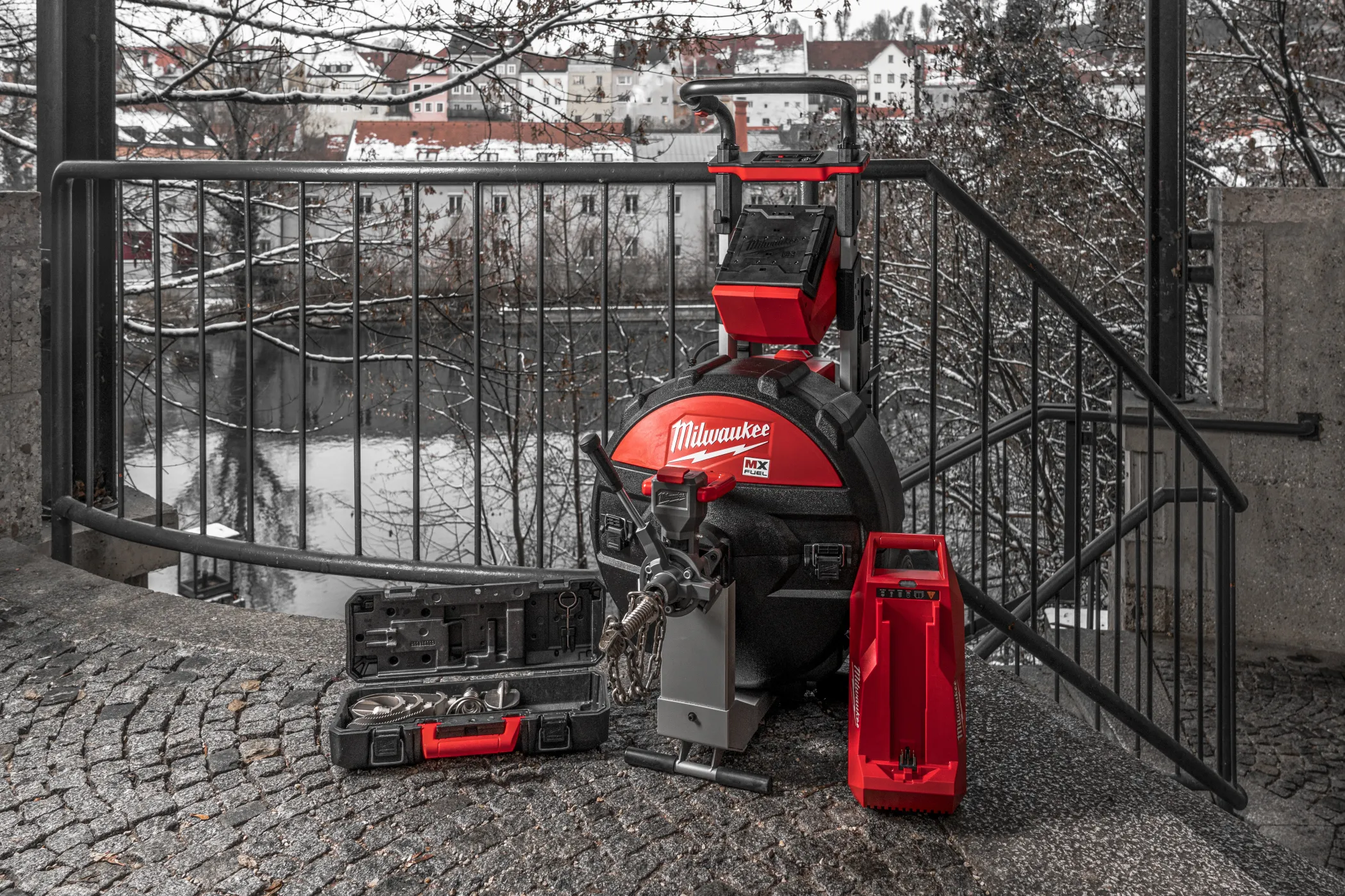 - Первая большая аккумуляторная барабанная машина, которая использует MILWAUKEE® тросики 16 и 20 мм в трубах диаметром от 75 до 200 мм и имеет достаточно мощности для срезания корней на расстоянии до 60 м
