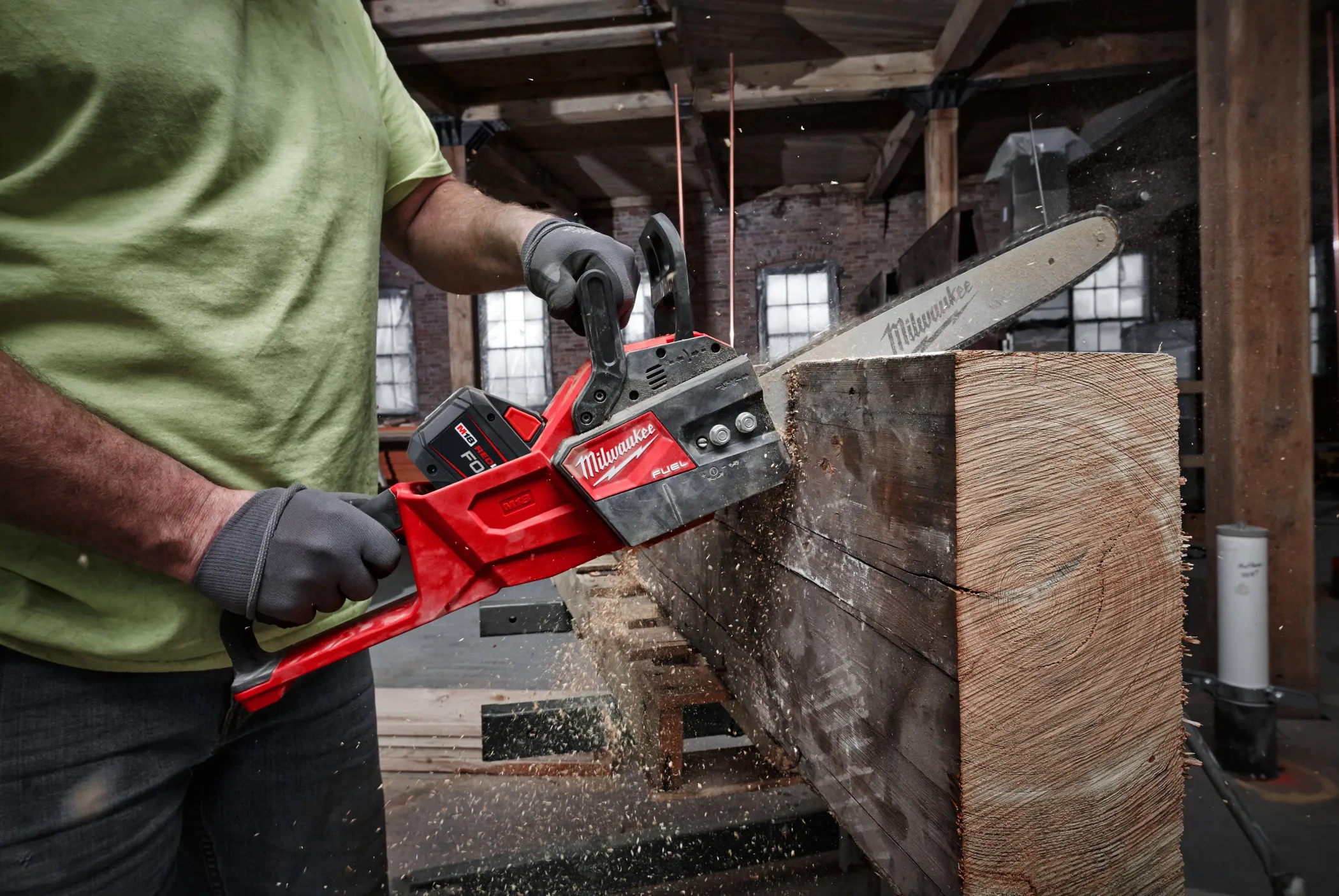 - Делает 150 резов в сосновом брусе 100 х 100 мм на одном заряде аккумулятора M18™ FORGE 12.0 Ач