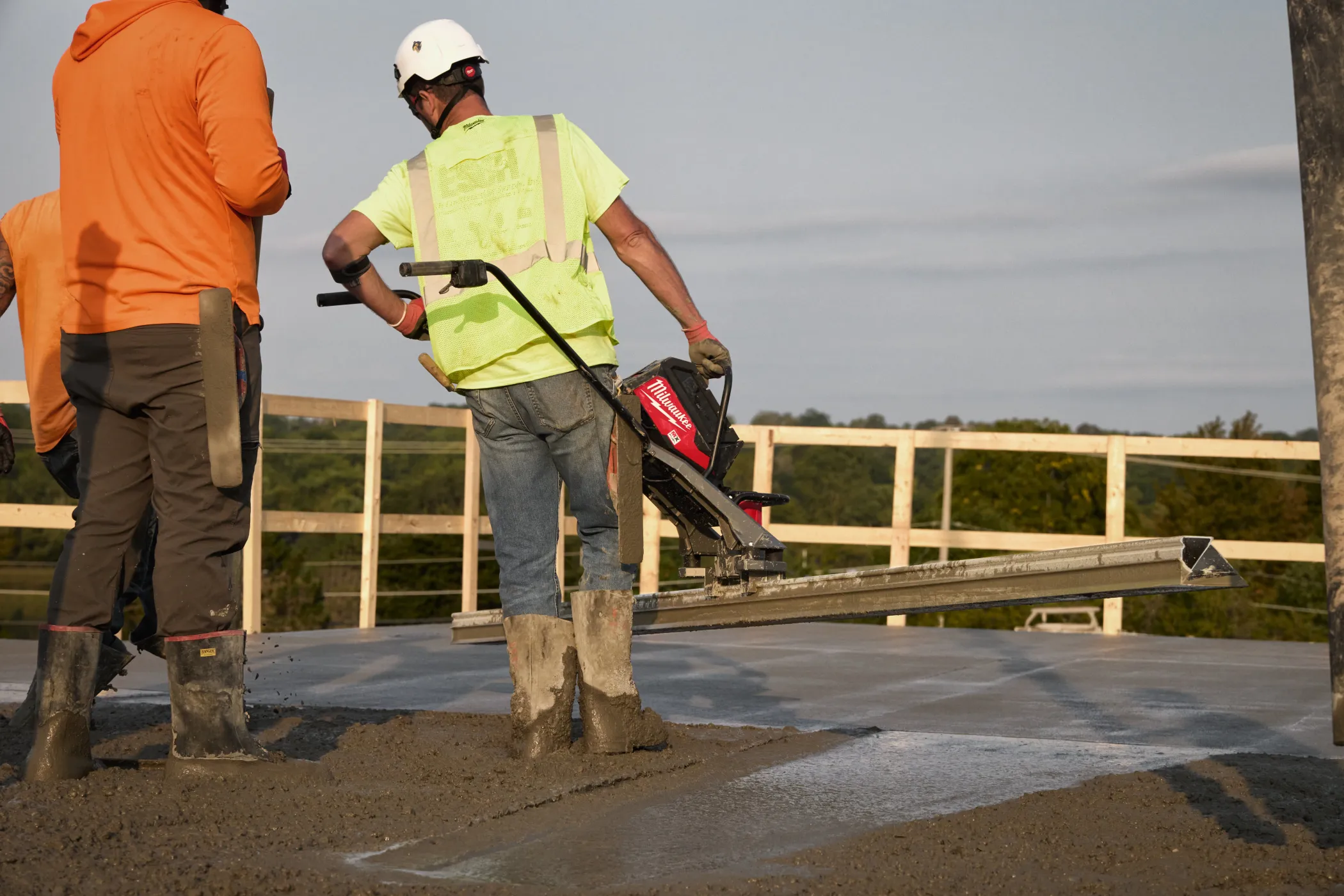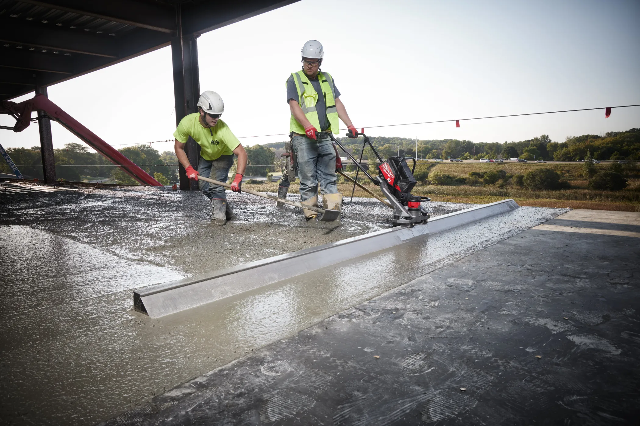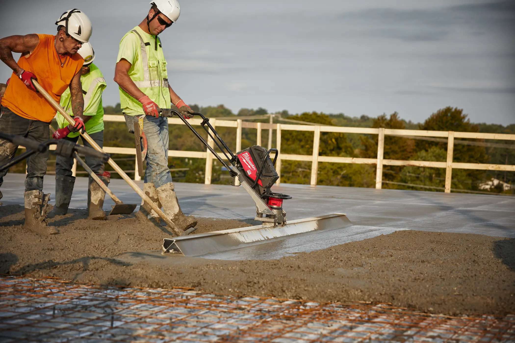 - Бесщеточный двигатель POWERSTATE™ обеспечивает мощность, позволяющую работать с правилом длиной 4.9 м и частотой колебаний 9 000 1/мин, с пусковым механизмом с регулировкой скорости, обеспечивая максимальный контроль в жестком и мокром бетоне