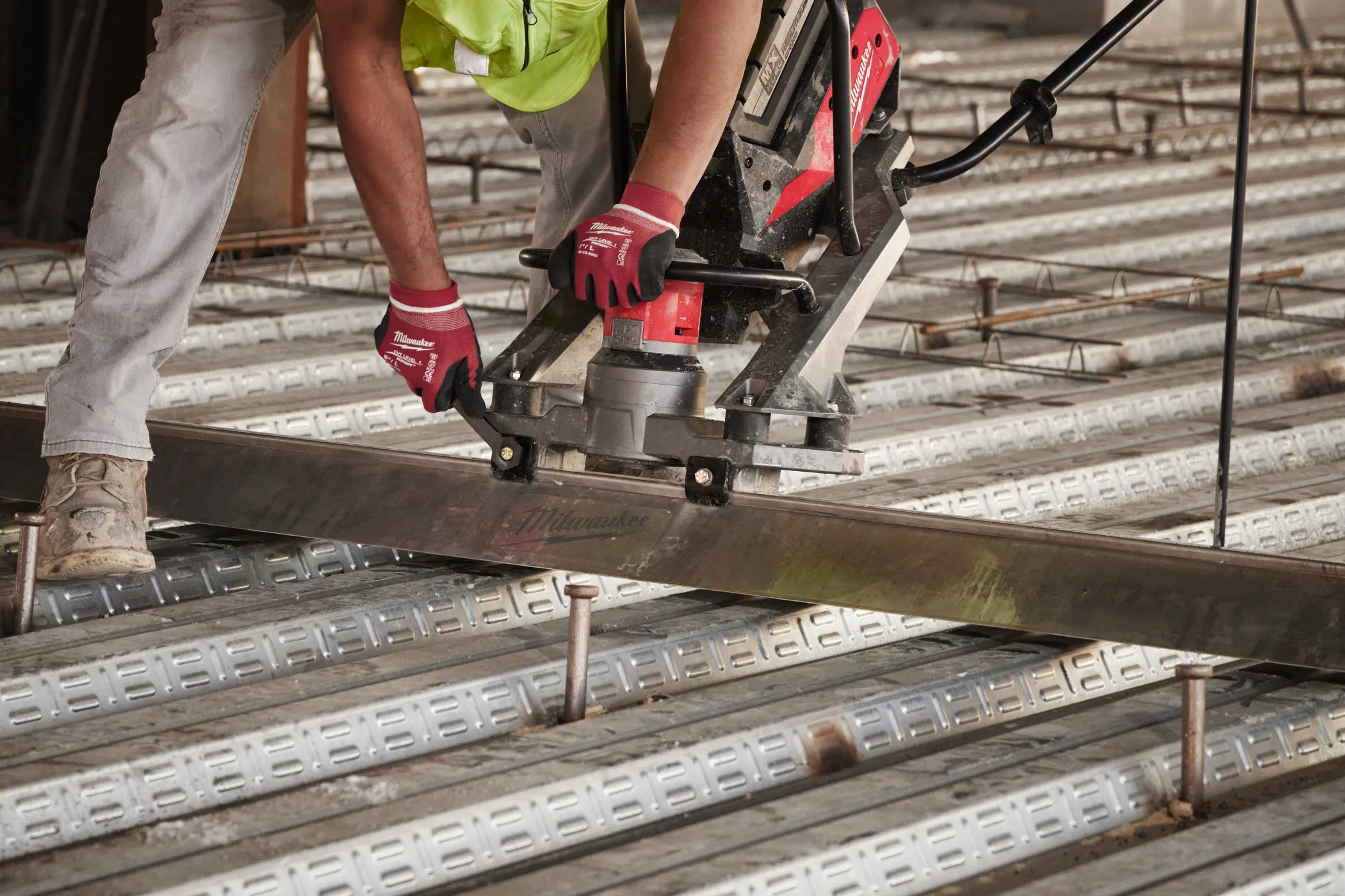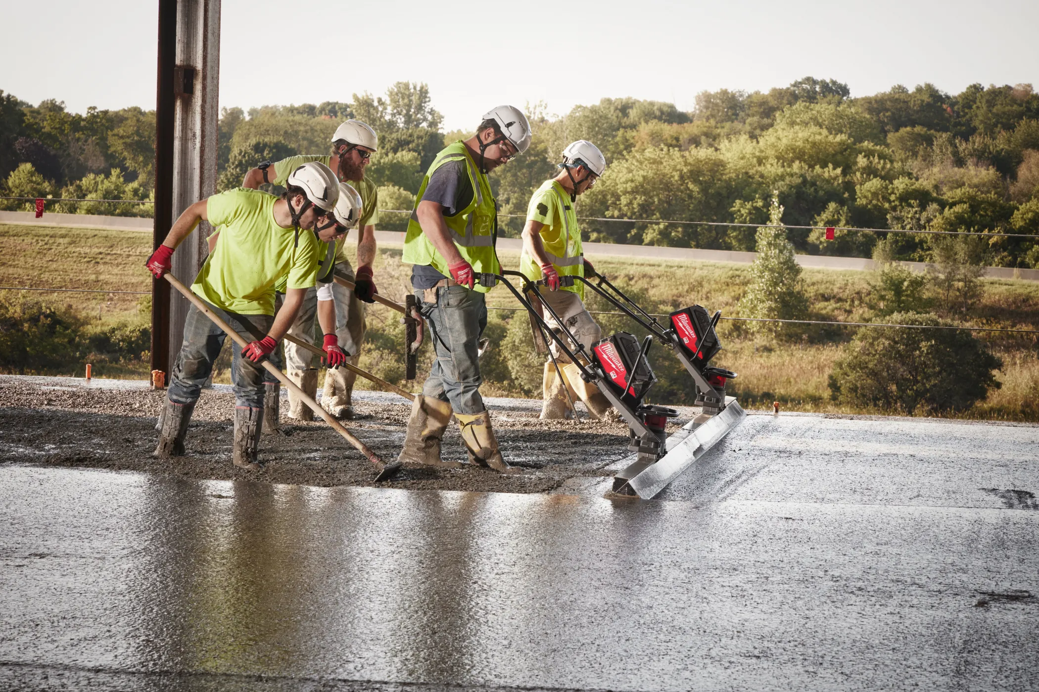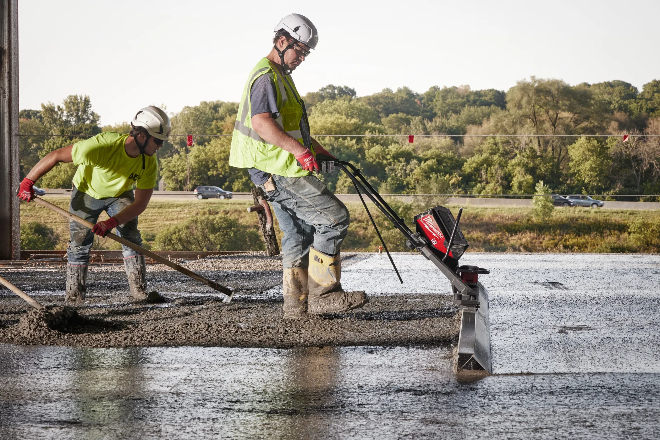- Бесщеточный двигатель POWERSTATE™ обеспечивает мощность, позволяющую работать с правилом длиной 4.9 м и частотой колебаний 9 000 1/мин, с пусковым механизмом с регулировкой скорости, обеспечивая максимальный контроль в жестком и мокром бетоне