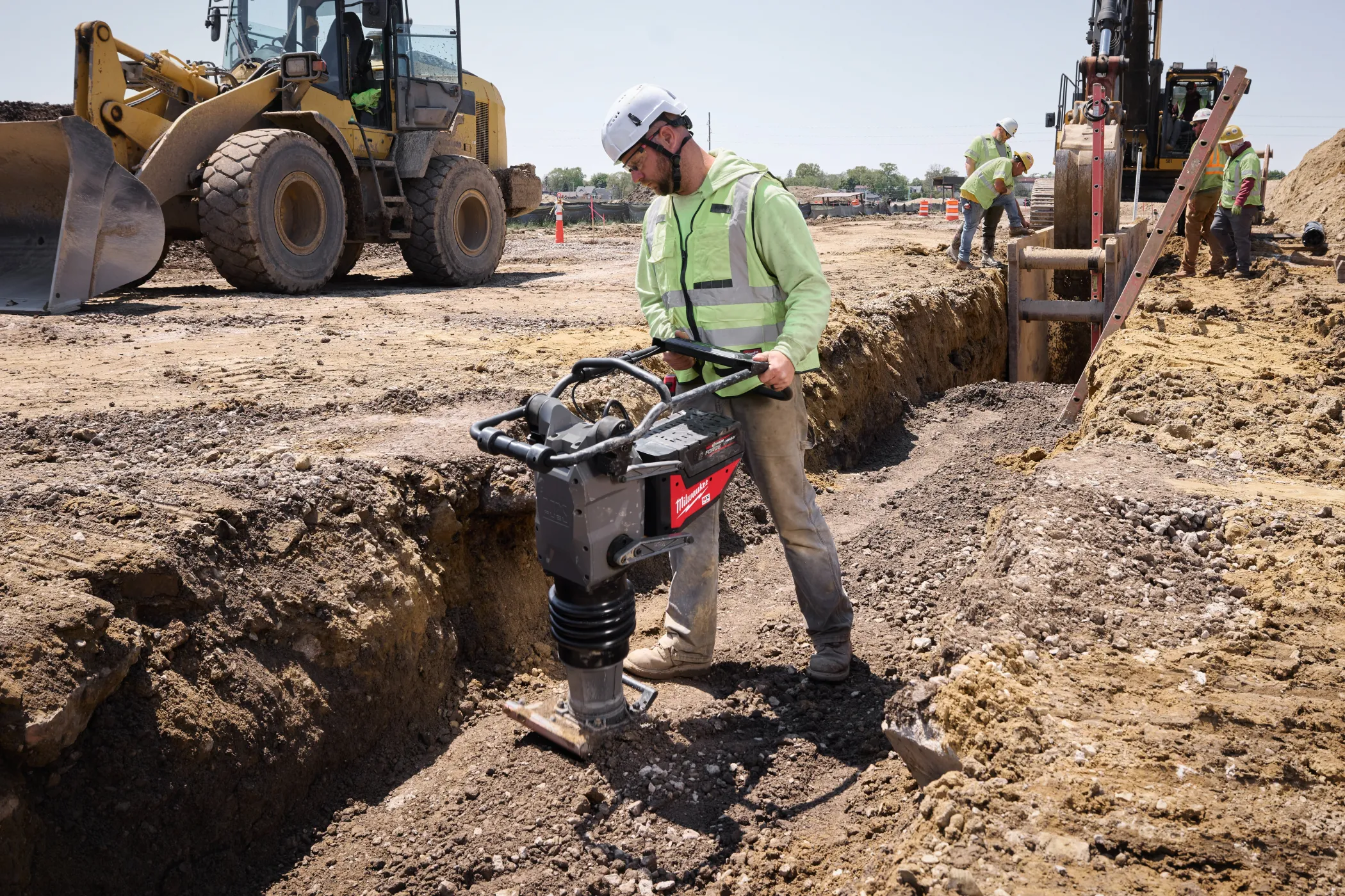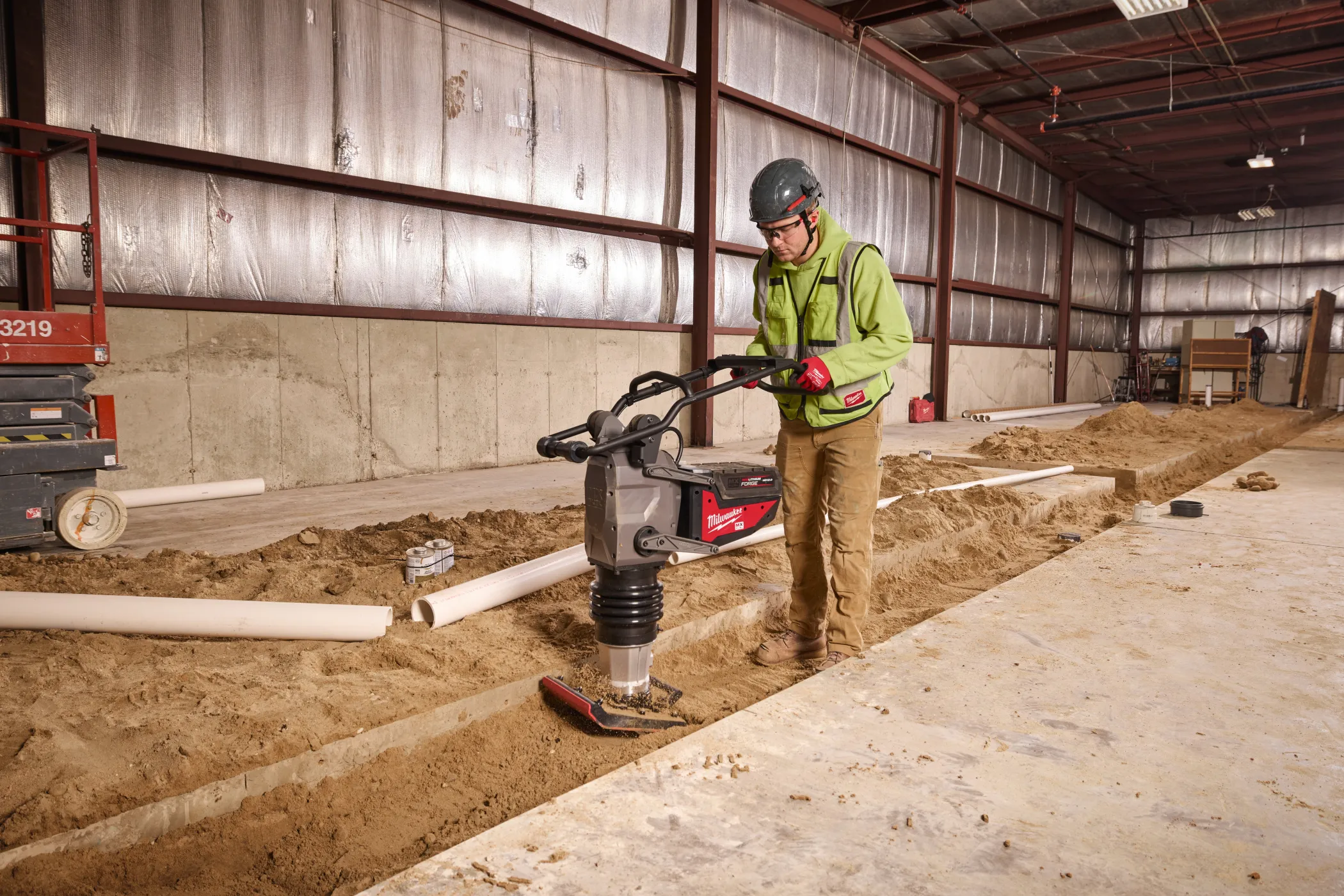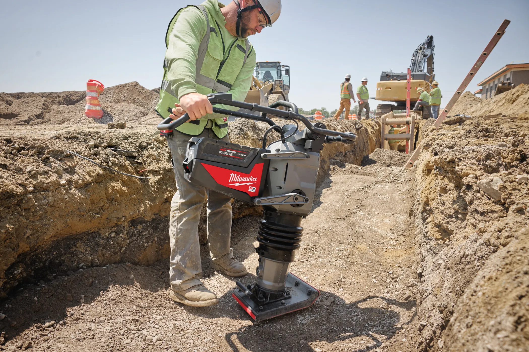- Milwaukee MXF RAM60 — это профессиональная аккумуляторная вибротрамбовка из линейки MX FUEL™, созданная для эффективного уплотнения грунта, щебня и асфальта без использования бензинового двигателя.