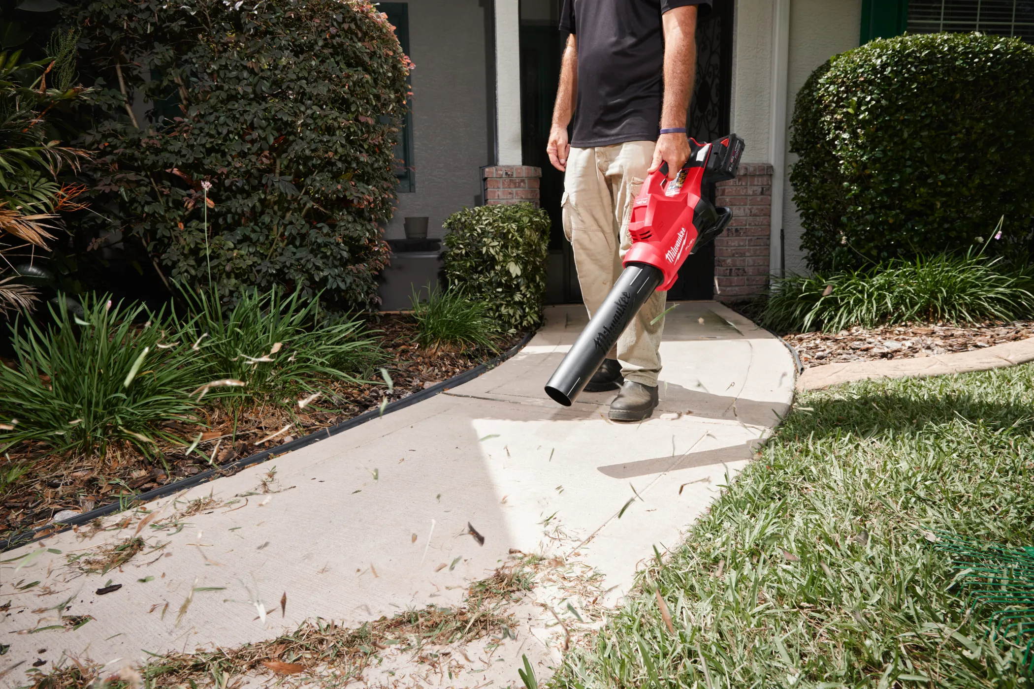 - Мощный двигатель работающий от 2-х аккумуляторов, обеспечивает до 17.7 м³/мин объем воздуха на скорости 233 км/ч для быстрой уборки опавших листьев, скошенной травы и мусора