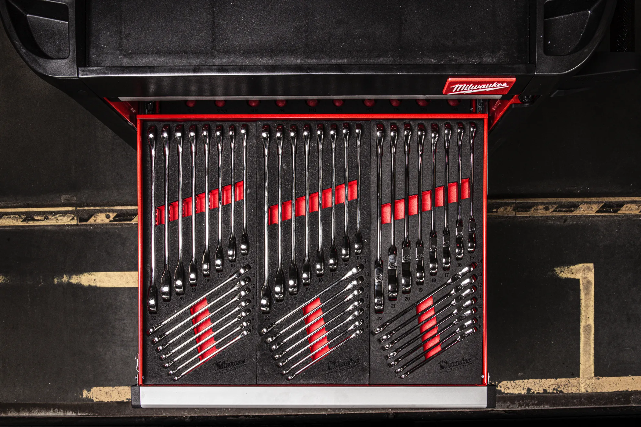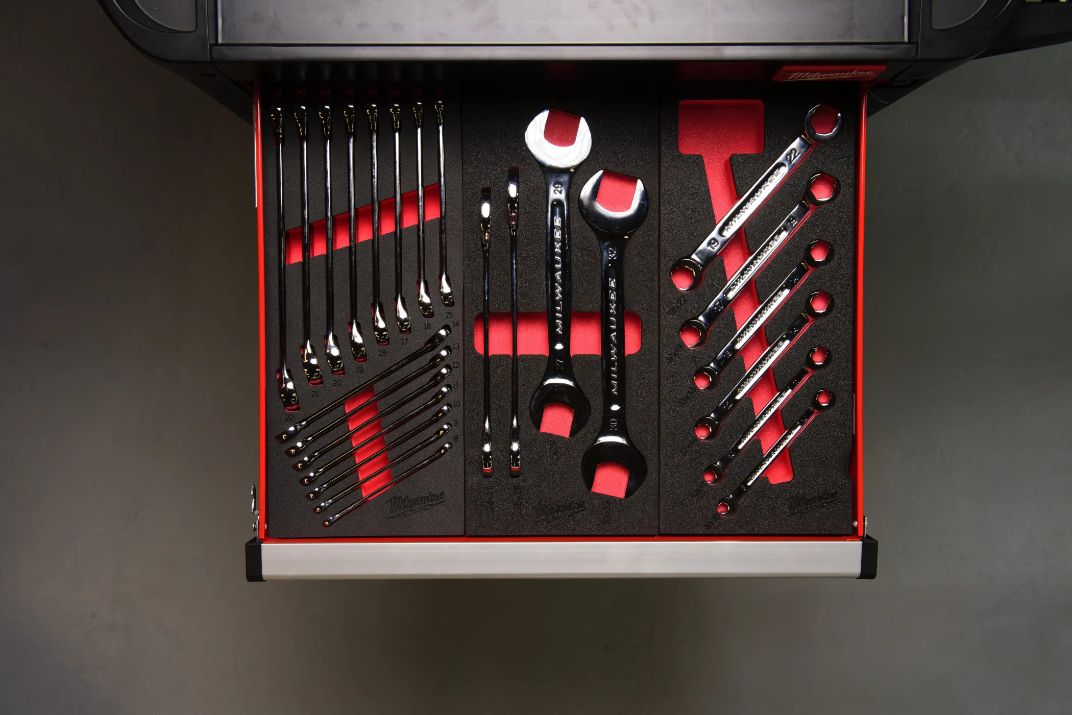 - Оптимизированное хранение. Набор из 15 ключей в ложементе для ящиков.