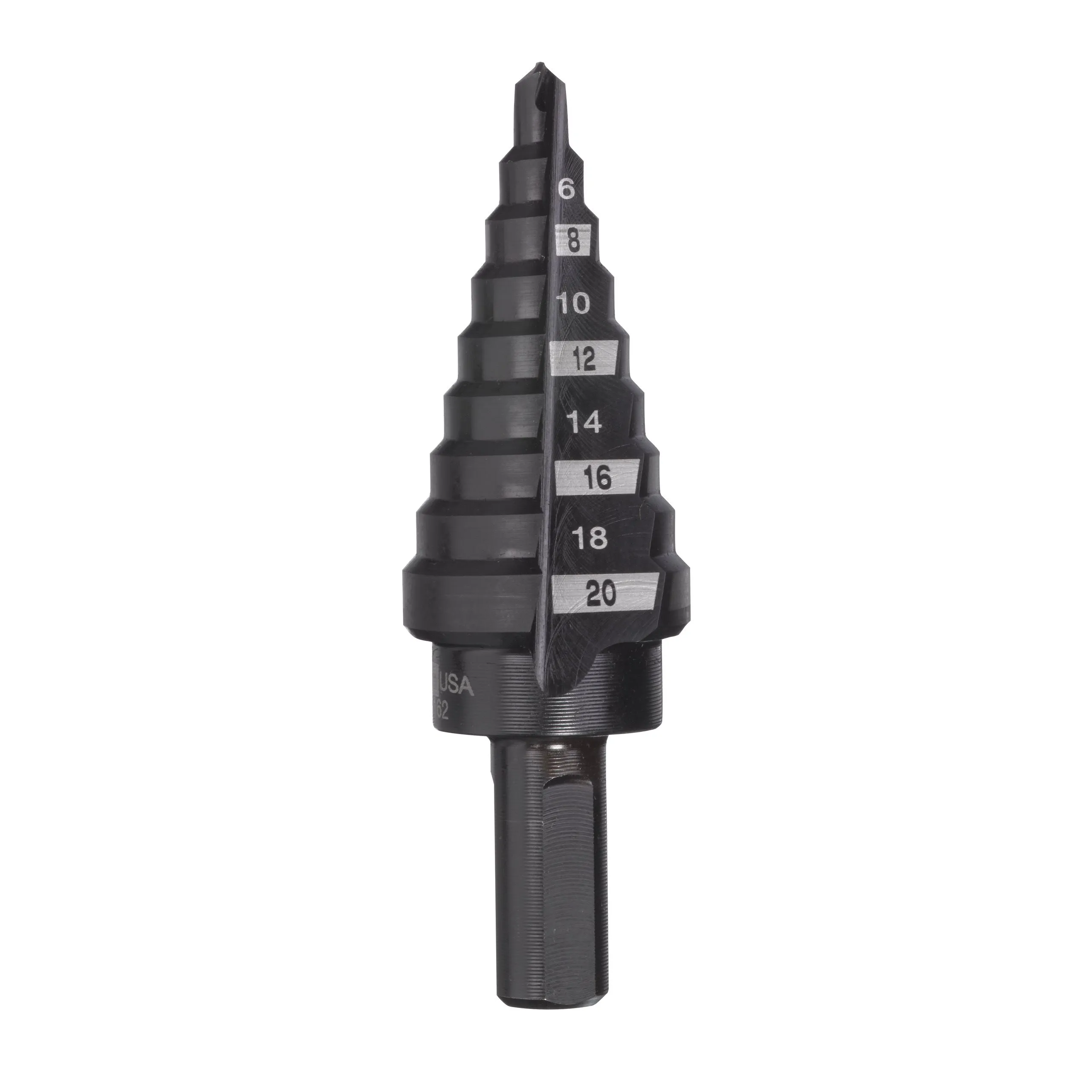 - Специальный наконечник и геометрия ступенчатого сверла - уменьшает риск закусывания сверла при использовании высокоскоростных аккумуляторных дрелей, а так же защищает материал от деформации.